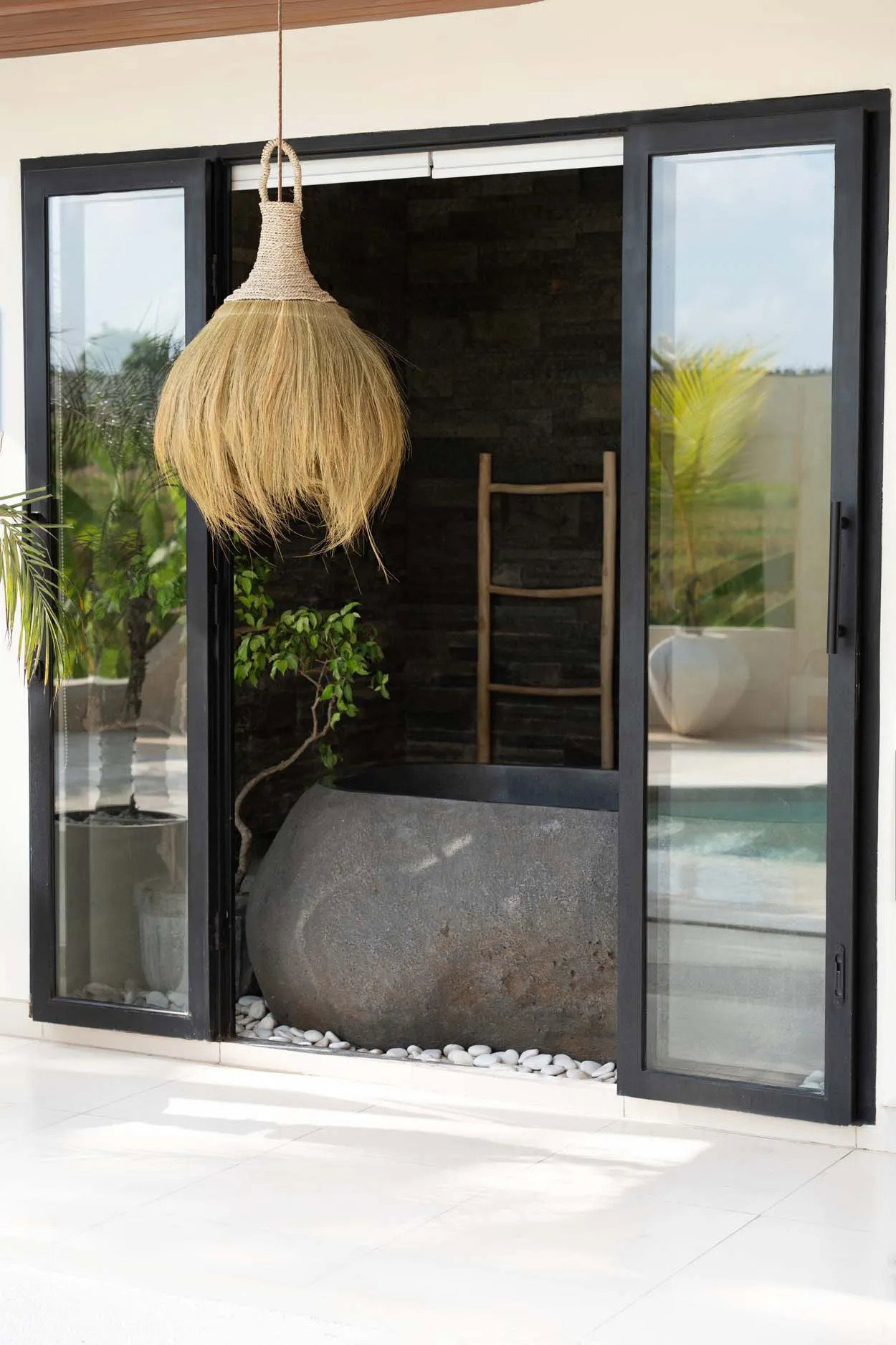 Lass sie sanft im Wohnzimmer schwingen oder über deiner überdachten Terrasse leuchten. Die Stimmung ist gelassen, das Licht weich und der Stil wirkt mühelos.