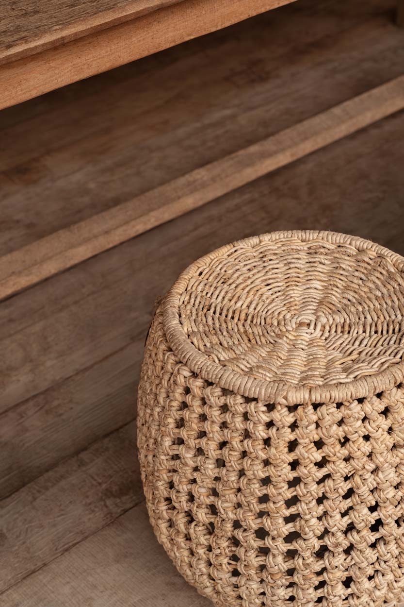 Bringen Sie Wärme und Textur in Ihr Zuhause mit Dem Dannih Hocker, handgefertigt aus nachhaltigem Bananenblatt. Perfekt als Sitzgelegenheit, Beistelltisch oder dekoratives Element, dieses vielseitige Stück fügt sich mühelos in jeden Raum ein und verleiht eine gemütliche, organische Note. Mit seiner robusten Konstruktion und erdigen Tönen ist Der Dannih Hocker stilvoll und praktisch, ideal für boho- oder naturinspirierte Einrichtungen.