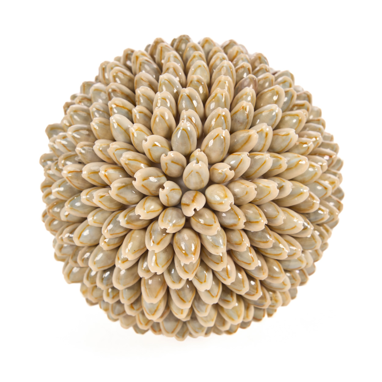The Oluolu Shell Ball introduces the shell decorative ball as an object of calm, organic structure. Its rounded form sets a soothing tone, adding soft dimension to shelves, tables, or curated displays.