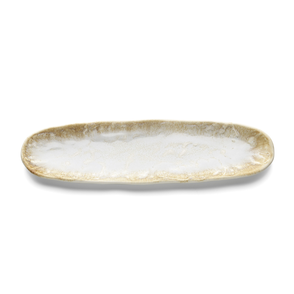 Shaped in smooth ceramic and finished with a white honey glaze, The Da Rocha Oval Platter introduces warmth through soft golden undertones. This oval ceramic platter brings elegance to the table, its elongated design offering ample space for shared dishes like roasted vegetables, sushi rolls, or pastries.