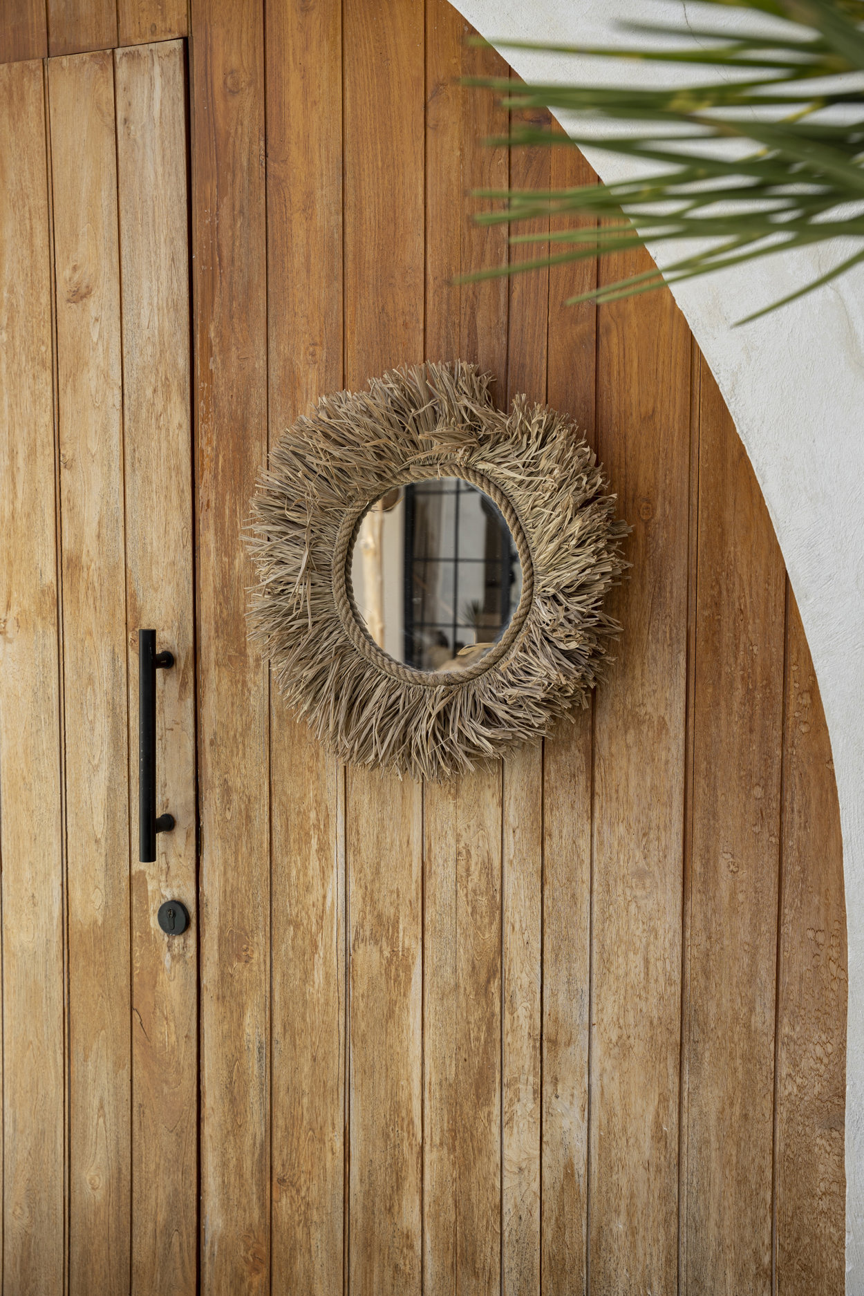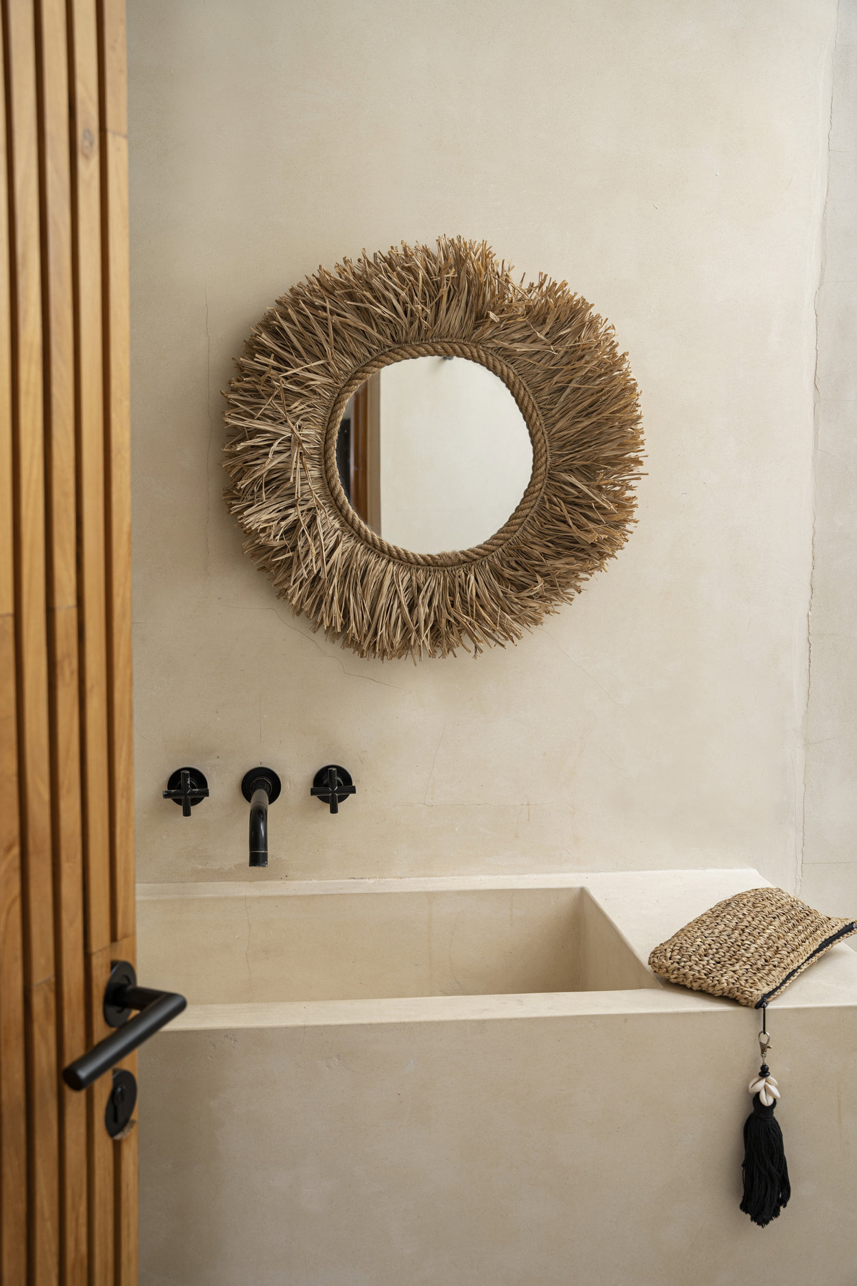 Introducing The Haïti Mirror, a handcrafted masterpiece that brings the beauty of nature into your home. Made from natural raffia, this mirror is a celebration of traditional craftsmanship and sustainable design. Each piece is meticulously woven by hand, ensuring a unique and artisanal touch that sets it apart from mass-produced decor. The natural color of the raffia complements any interior style, from bohemian to minimalist, adding warmth and texture to your space. Whether hung in your entryway, bedroom, or living room, The Haïti Mirror is more than just a functional piece—it's a statement of artistry and culture.