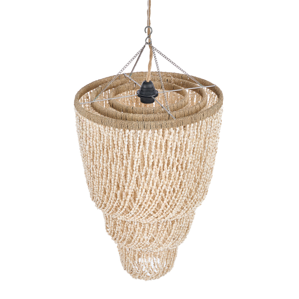 The Lagoon Shell Chandelier reveals itself as a medium shell chandelier that transforms light into a gentle coastal glow. Rounded shells shimmer like tides touched by the sun, cascading in layers that shift the atmosphere from ordinary brightness to calm radiance.