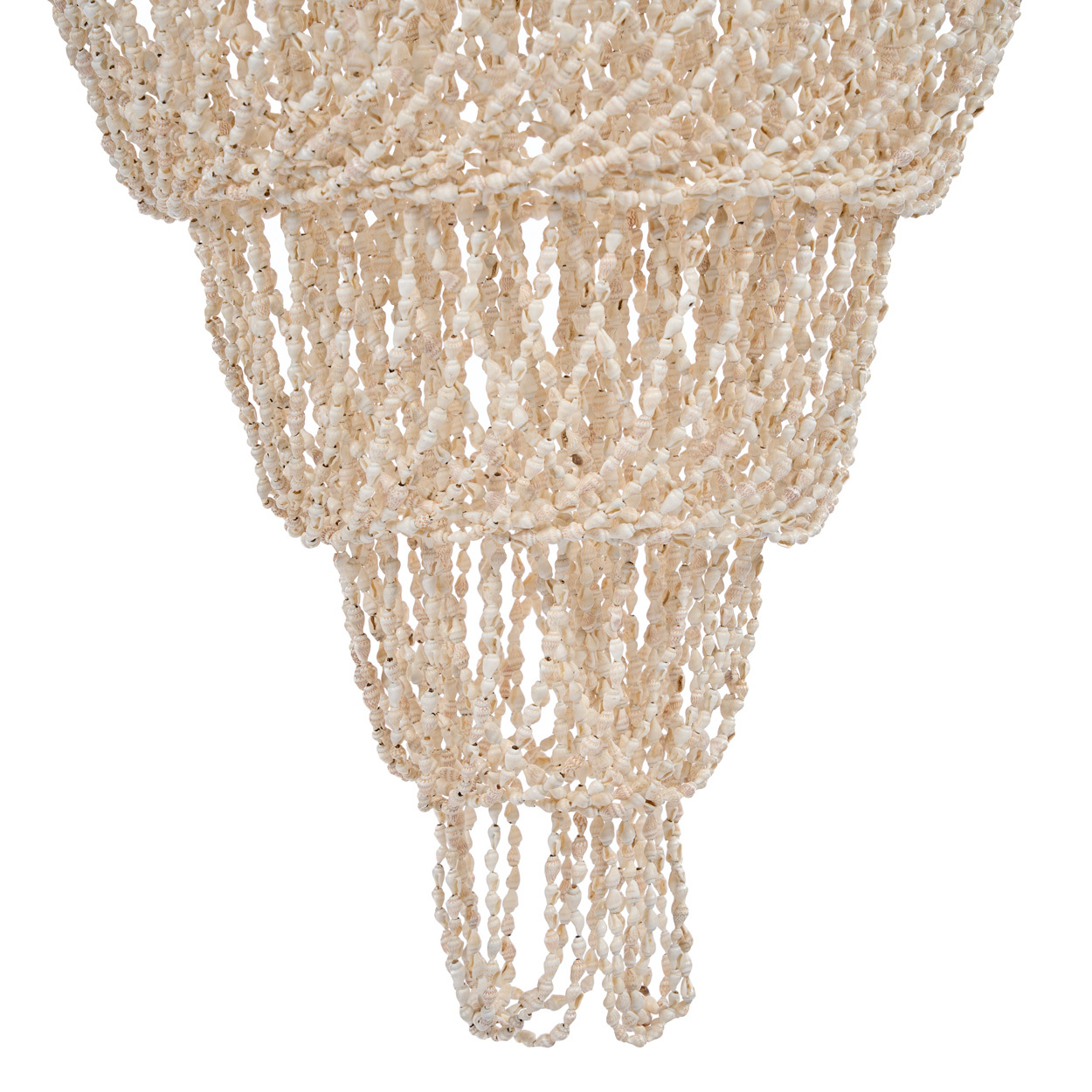 The Ocean Tower Shell Chandelier rises as a large shell ceiling light that captures the spirit of the sea. Its layered shells cascade in vertical rhythm, glimmering as they catch the glow, like waves reflecting sunlight. The form feels both playful and monumental, bringing the drama of the ocean into your home.