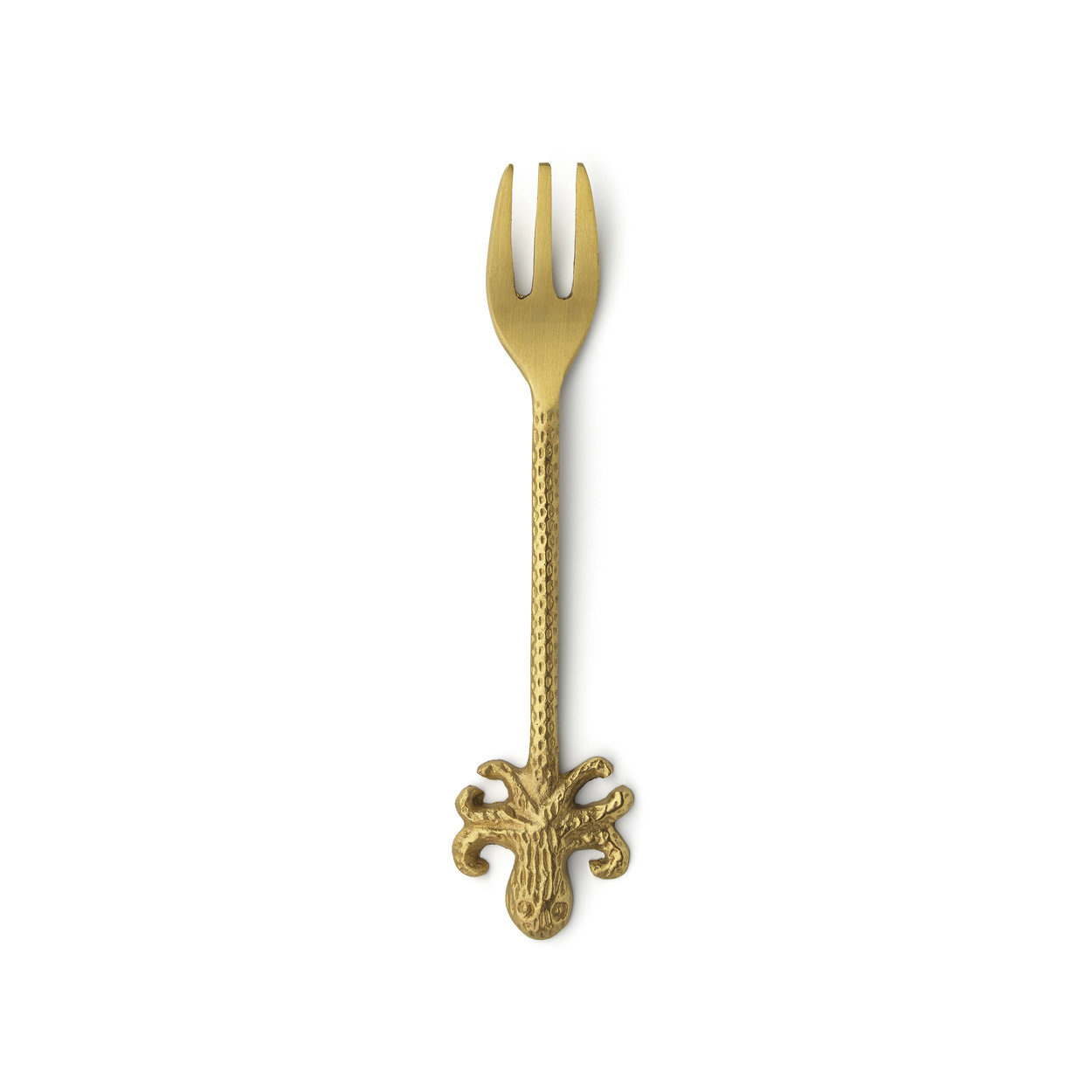Small in size but rich in detail, the Octopus Fork brings a whimsical yet refined touch to your table. Its gold-toned brass surface adds a hint of shine, making it perfect for serving small bites, cheeses, or desserts with style.
