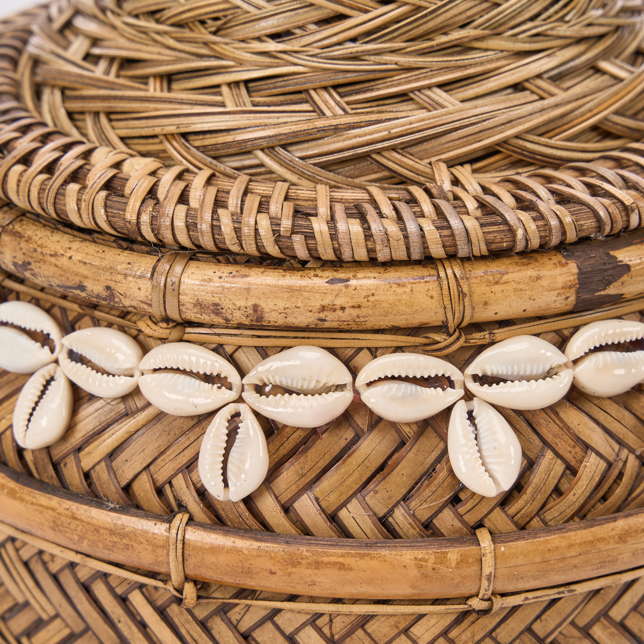 The Treasure Box transforms storage into an element of style. This wicker storage box with shell detailing not only keeps belongings in order but also enriches interiors with its natural presence. Its woven body and organic tones fit seamlessly into rustic, coastal, or eclectic spaces.