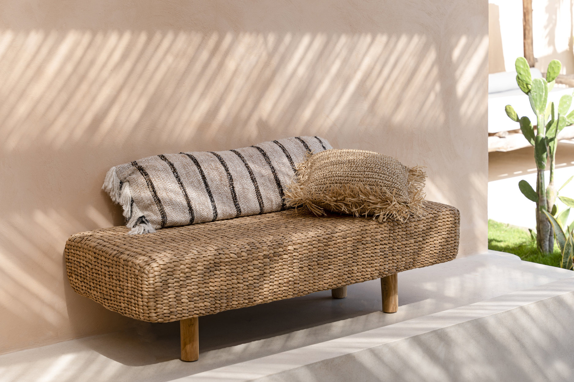 Where else can you find both comfort and beauty? With this chic bench, handcrafted from water hyacinth and combined with sturdy wooden legs, it offers the perfect balance of style and practicality.