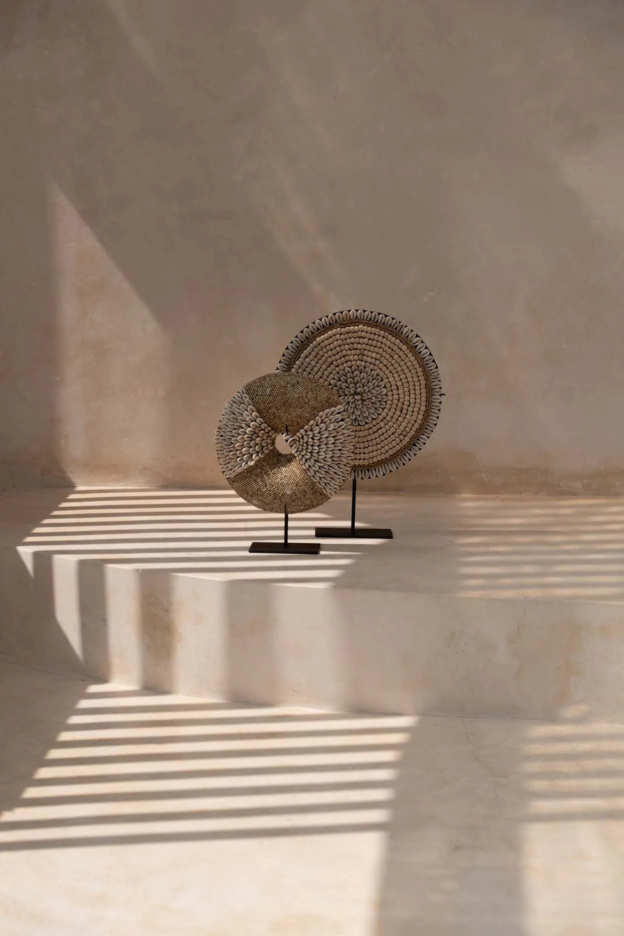 Hechos a mano con conchas naturales y montados sobre una base de hierro resistente, estos elementos escultóricos aportan calidez, textura y un espíritu alegre a tu espacio. Ya sea en la sala, estudio o rincón favorito, funcionan como acento encantador y tema de conversación.