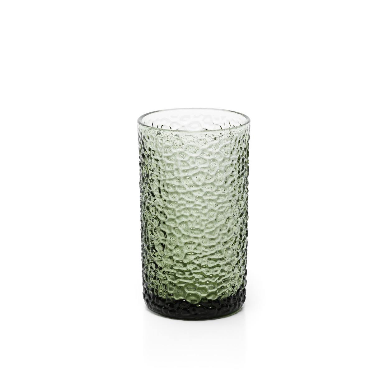 Con su distintiva textura de guijarros el Vaso Highball Green Pebble demuestra cómo un vaso highball puede ser práctico y artístico a la vez. Su superficie texturada capta la luz aportando profundidad y movimiento a la mesa.