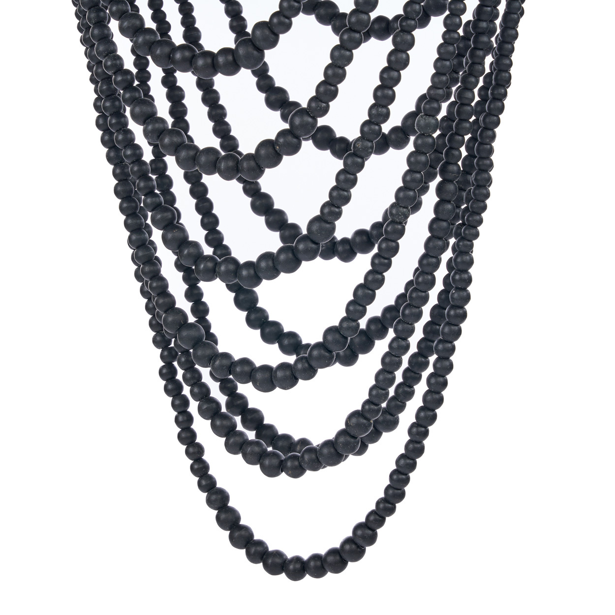 Perfecta para habitaciones altas y abiertas, evoca calma arquitectónica. Su acabado negro mate aporta equilibrio y combina con texturas de piedra, lino o madera. La luz se filtra suavemente entre las cuentas, creando una atmósfera íntima y acogedora.