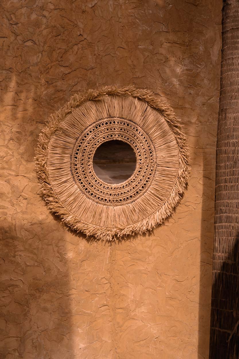 Le design du Miroir Yuki est un trésor caché, simple au premier regard mais de plus en plus complexe à mesure qu'on l'observe. Cinq anneaux de différents tissages de raphia s'étendent vers l'extérieur pour former des franges qui dégagent une atmosphère côtière typique. La couleur naturelle du matériau s'adapte à tous les intérieurs et espaces, mais nous vous suggérons de donner à ce magnifique design une place de choix.
