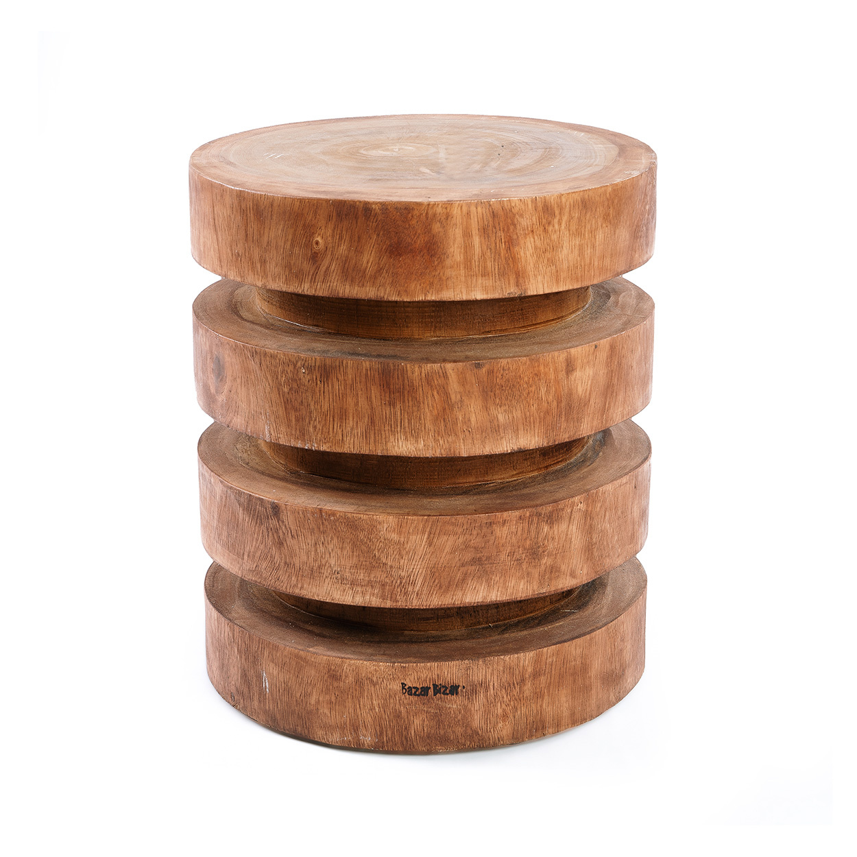 Un magnifique tabouret fabriqué à partir de bois de suar naturel et robuste, avec une finition en vernis brun foncé. Chaque tabouret comporte quatre anneaux solides soigneusement sculptés dans le bois. Le tabouret Massaka est à la fois un élément de design élégant et un meuble solide, qui trouvera sa place dans n’importe quelle pièce. Le bois de suar varie toujours en tonalité, couleur et motif. Matériau vivant, il se dilate et se contracte, ce qui peut provoquer fissures et nœuds. Nous prenons des mesures pendant le transport et dans notre entrepôt pour sécher et enduire les articles en suar, mais il peut encore contenir de l’humidité susceptible de s’infiltrer au fil du temps. Il est recommandé de traiter le produit chaque année avec une huile protectrice, ce qui ravivera également la couleur.