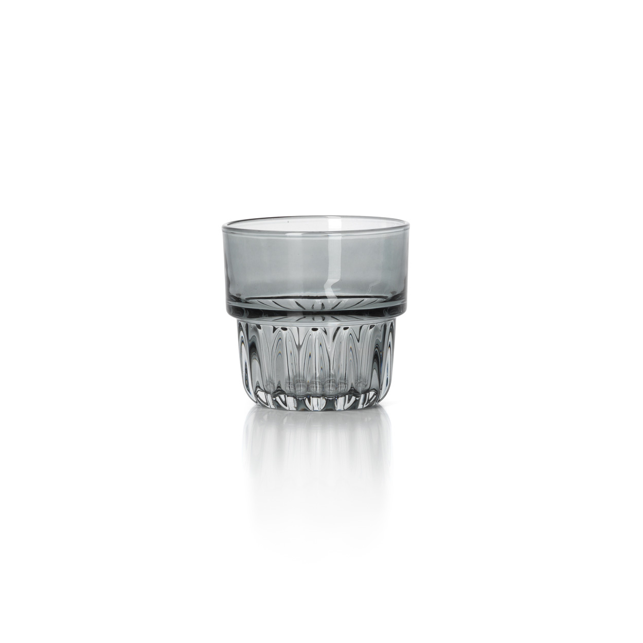 • Gobelet en verre gris fumé à la forme sculpturale et à l’élégance subtile. Soufflé à la bouche en verre recyclé et disponible en plusieurs nuances.