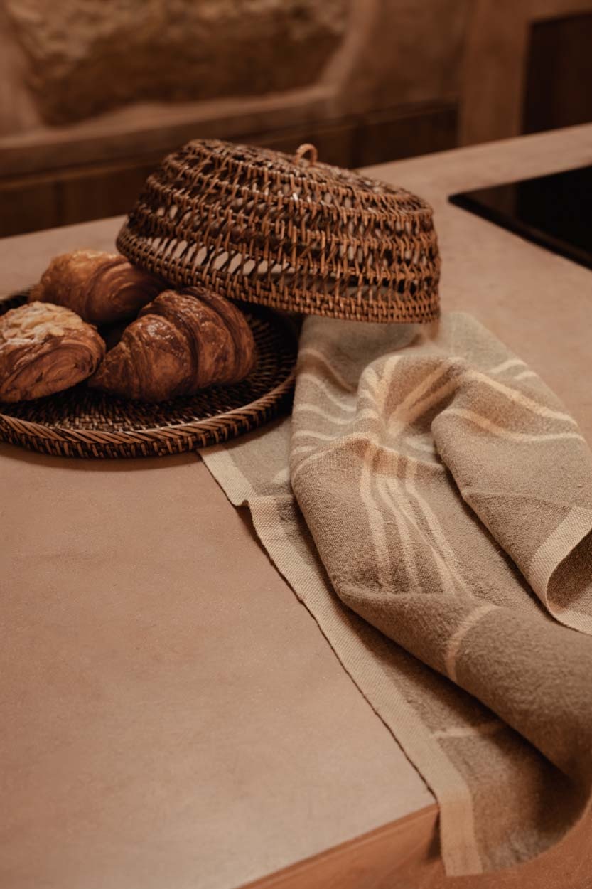 Le Torchons Palm Tree En Lin apporte une sensation de légèreté à la cuisine, où la lumière glisse lentement sur les surfaces et où l’espace reste volontairement épuré. Dans ce cadre apaisant, le torchon bohème en lin ajoute une note graphique subtile, à la fois détendue et ancrée.
