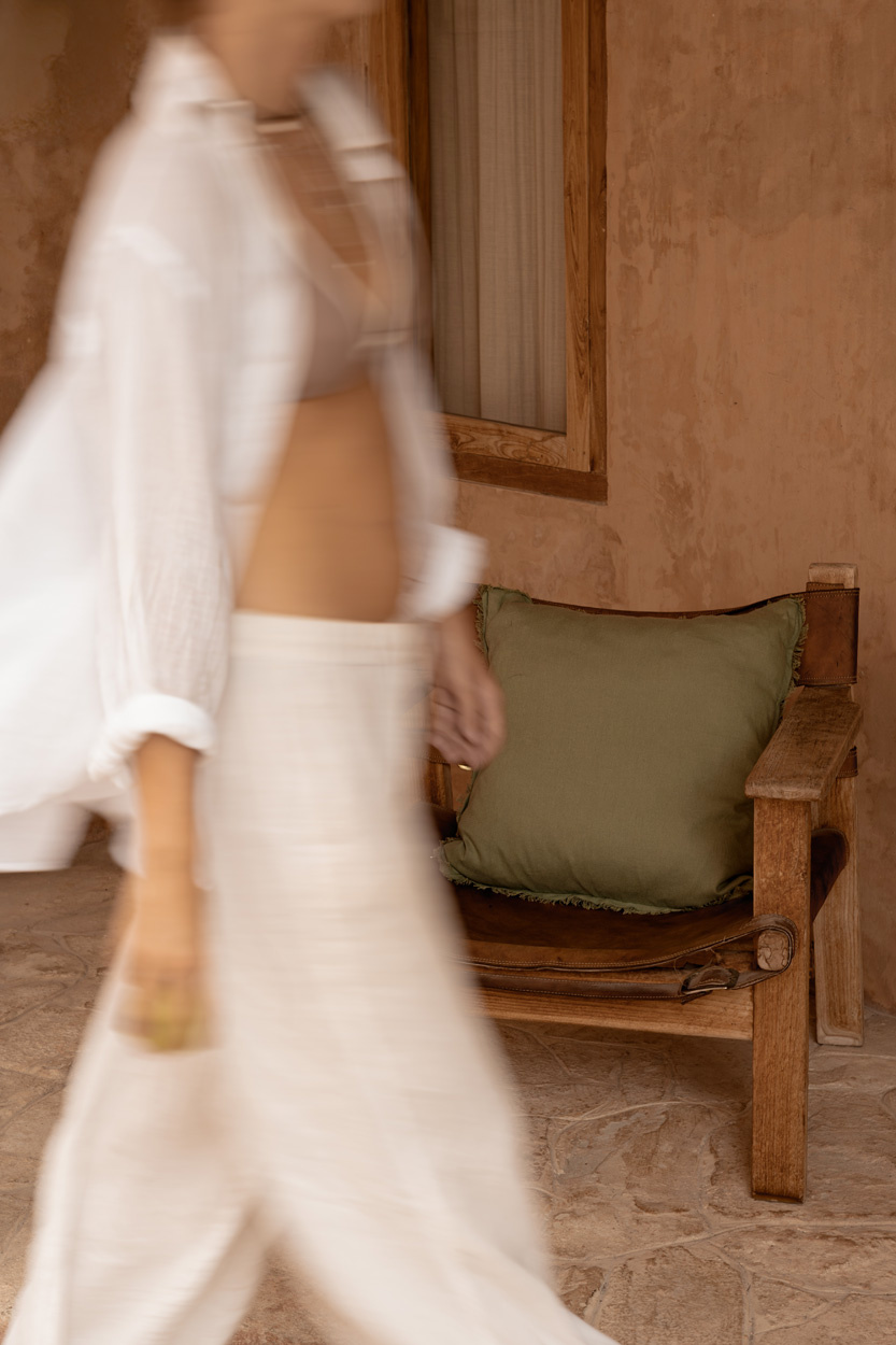 La housse de coussin Minty Fresh incarne une sophistication apaisante. Cette housse de coussin vert sauge adoucit instantanément les intérieurs avec son charme discret et son caractère adaptable. Polyvalente et intemporelle, elle s’associe aussi bien aux tons neutres qu’aux accents plus contrastés. Au format carré 50 x 50 cm, elle offre une surface généreuse, idéale à superposer sur un canapé, un fauteuil ou un lit. Sa teinte verte subtile se fond harmonieusement dans les univers scandinaves ou contemporains. Confectionnée en lin, elle allie solidité, respirabilité et texture raffinée pour un usage quotidien. Les bords, finis à la main avec de délicates franges, mettent en valeur le détail artisanal. De légères variations de ton et de tissage soulignent l’unicité de chaque pièce et confèrent à cette housse une élégance habitée et intemporelle.