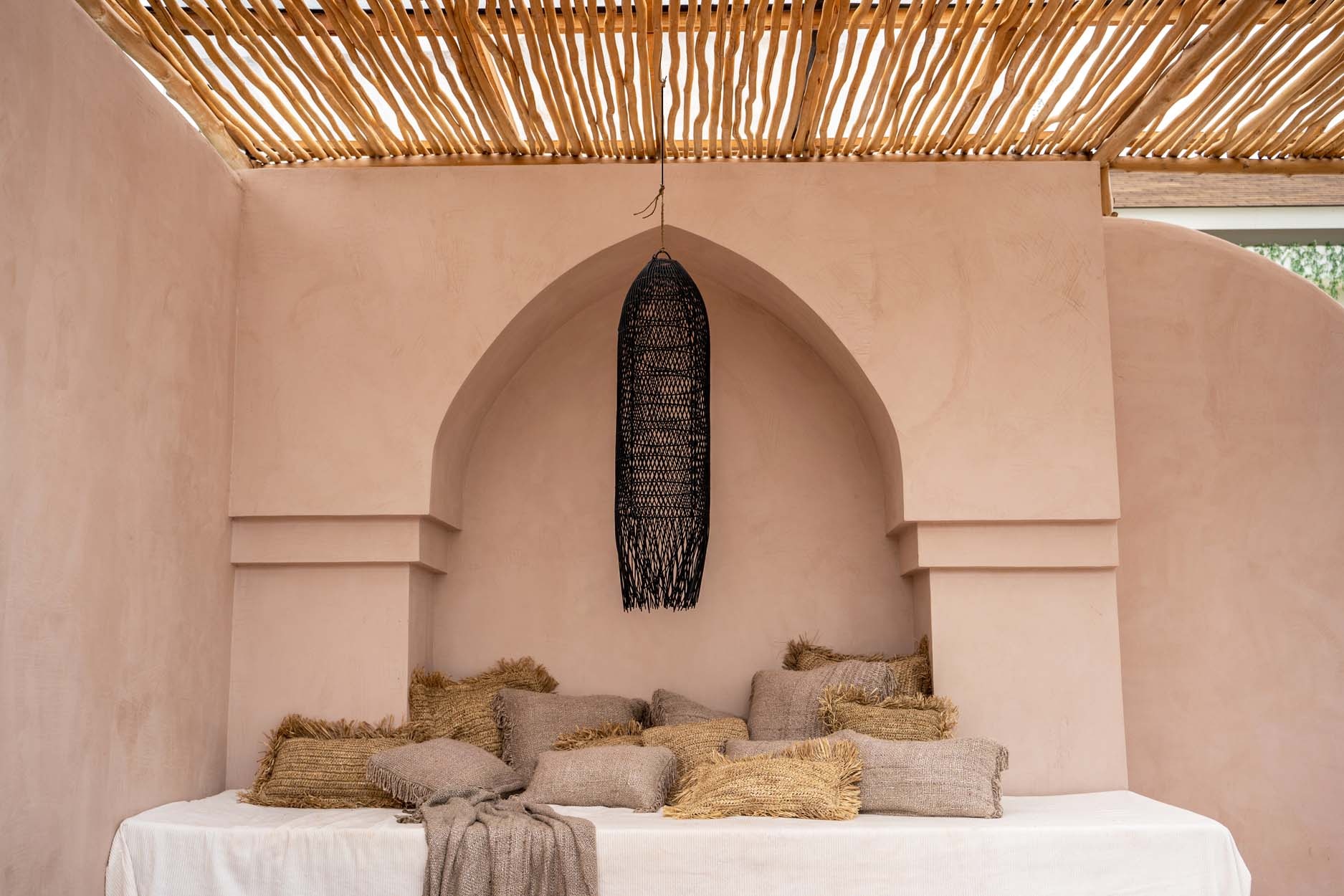 Placée au-dessus de tables à manger ou de cages d’escalier, elle adoucit la lumière plutôt que de l’intensifier et permet aux pièces de rester ouvertes et équilibrées. Le rotin tressé filtre la lumière en motifs délicats tandis que le profil élancé attire le regard vers le haut dans les volumes élevés. L’atmosphère est sereine et propice aux repas prolongés et aux moments calmes.