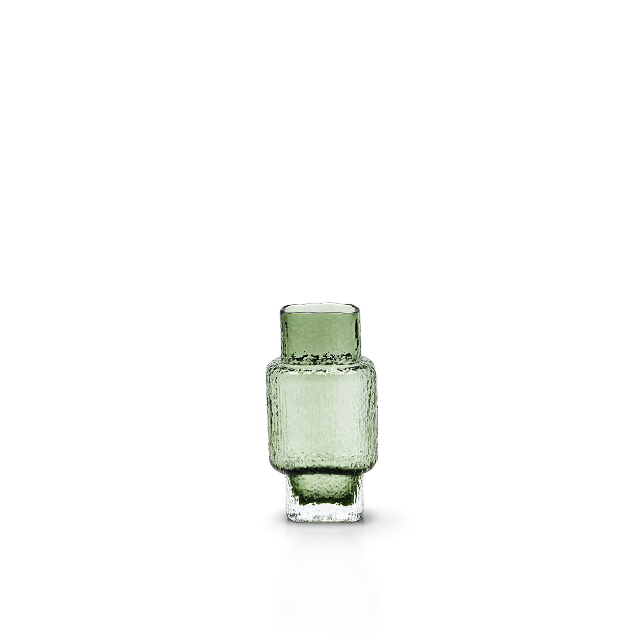 • Vase en verre artisanal de taille moyenne en tons verts profonds, fabriqué à partir de verre recyclé avec des variations naturelles pour un style intemporel.