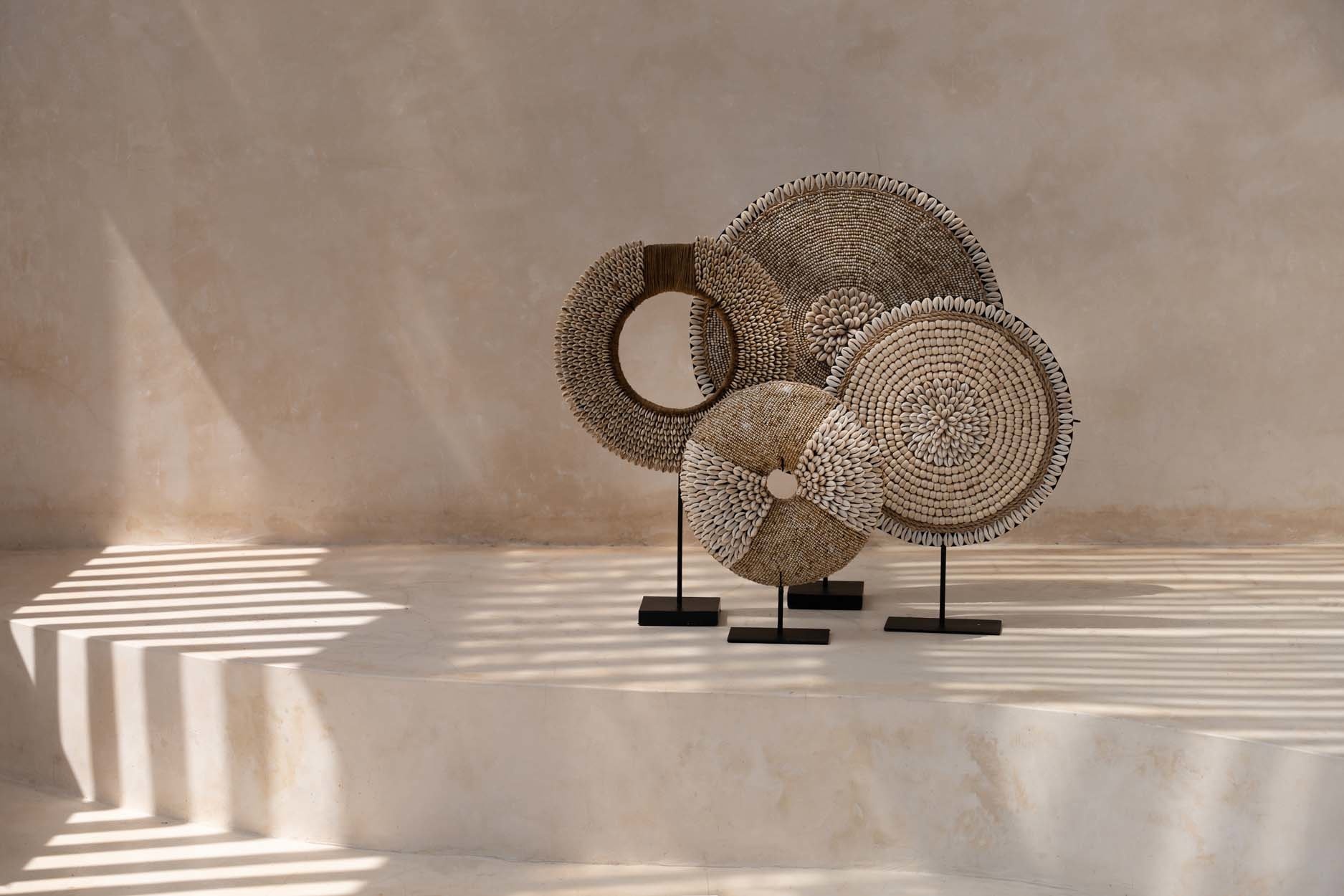 Realizzati a mano con conchiglie naturali e montati su una solida base in ferro, portano calore, texture e uno spirito gioioso ai tuoi spazi. In soggiorno, nello studio o in un angolo decorativo, fungono sia da accento affascinante sia da spunto di conversazione.