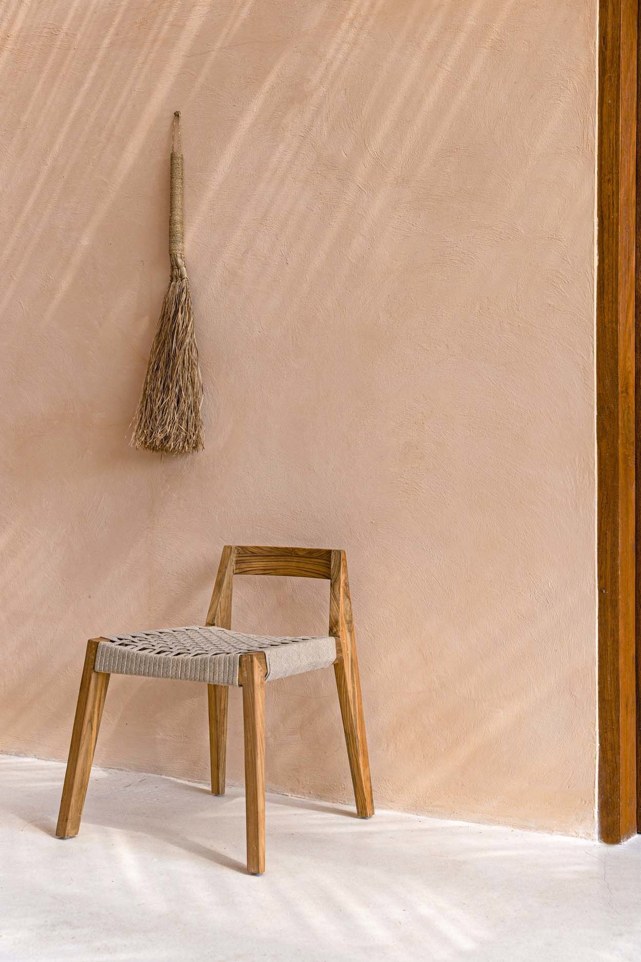 Adatta a leggeri momenti interni o come accento sospeso, porta una morbidezza tranquilla a pareti e ingressi. Il manico avvolto crea un profilo slanciato, mentre le fibre libere aggiungono un movimento delicato che si adagia naturalmente in spazi dal ritmo lento. Creata come accento decorativo, non è destinata all’uso quotidiano.