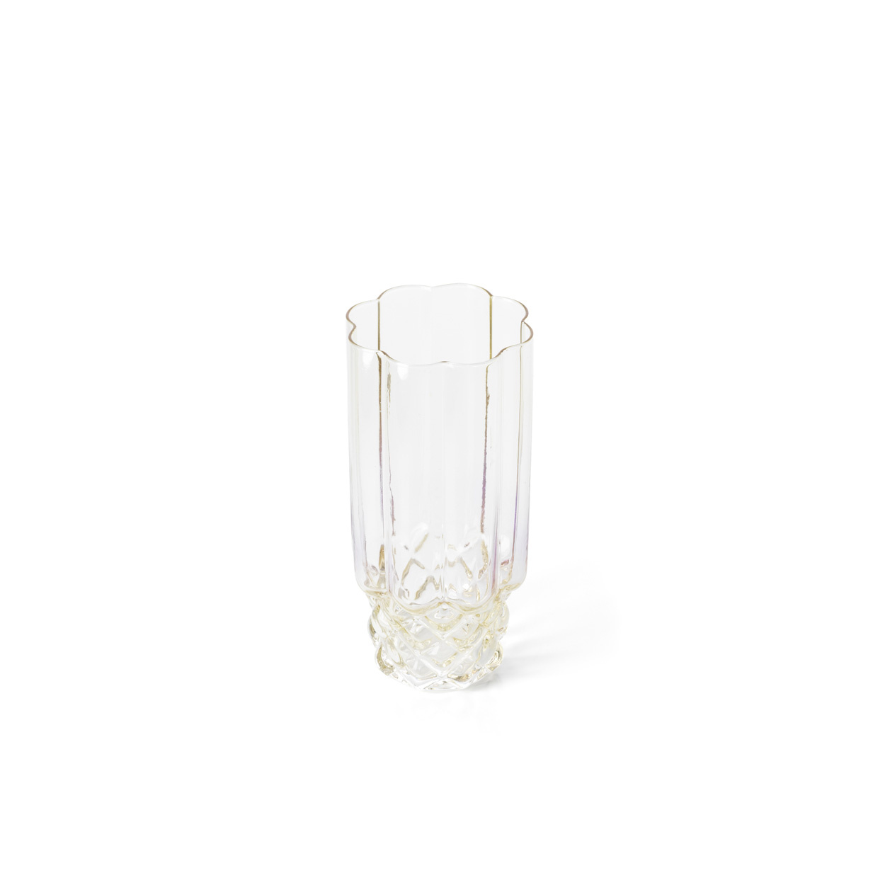 Ogni bicchiere è soffiato a bocca in vetro riciclato da artigiani esperti. Le leggere variazioni di colore e superficie testimoniano la sua natura artigianale, rendendo ogni pezzo unico e sostenibile.
