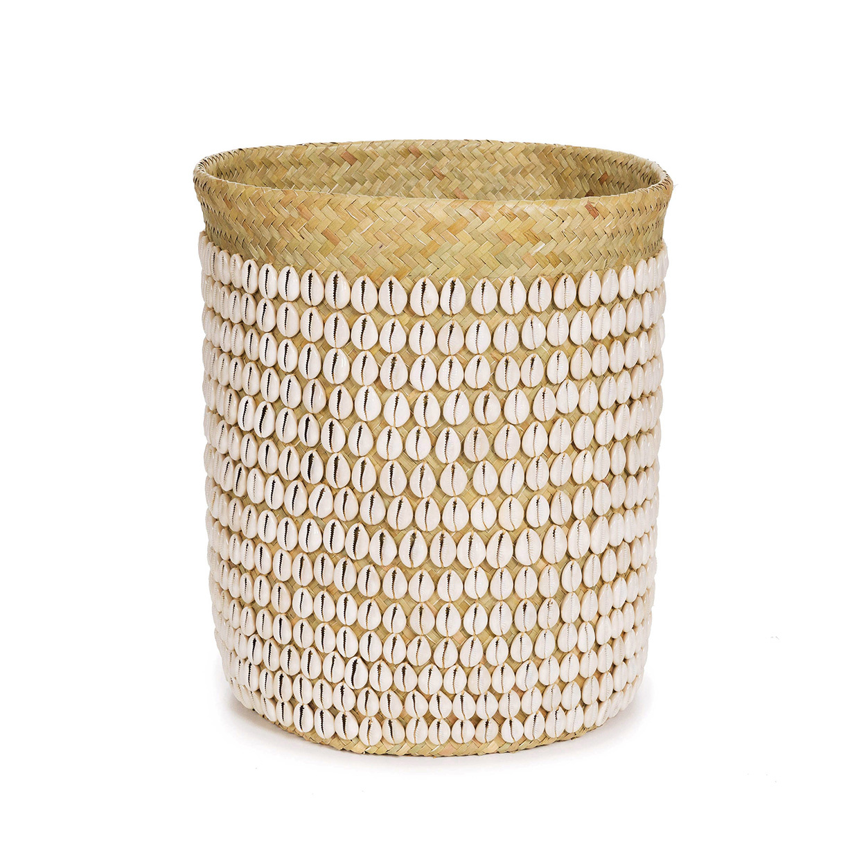Deze mand, gemaakt van de pandanplant en versierd met schelpen verzameld op de Balinese stranden, is een echte blikvanger. Kijk eens naar de ongelooflijke details en liefde die in deze handgemaakte mand zijn gestoken, je zult hem voor altijd in je huis willen laten schitteren. Gebruik hem om wasgoed of speelgoed op te bergen of zelfs voor een grote plant.