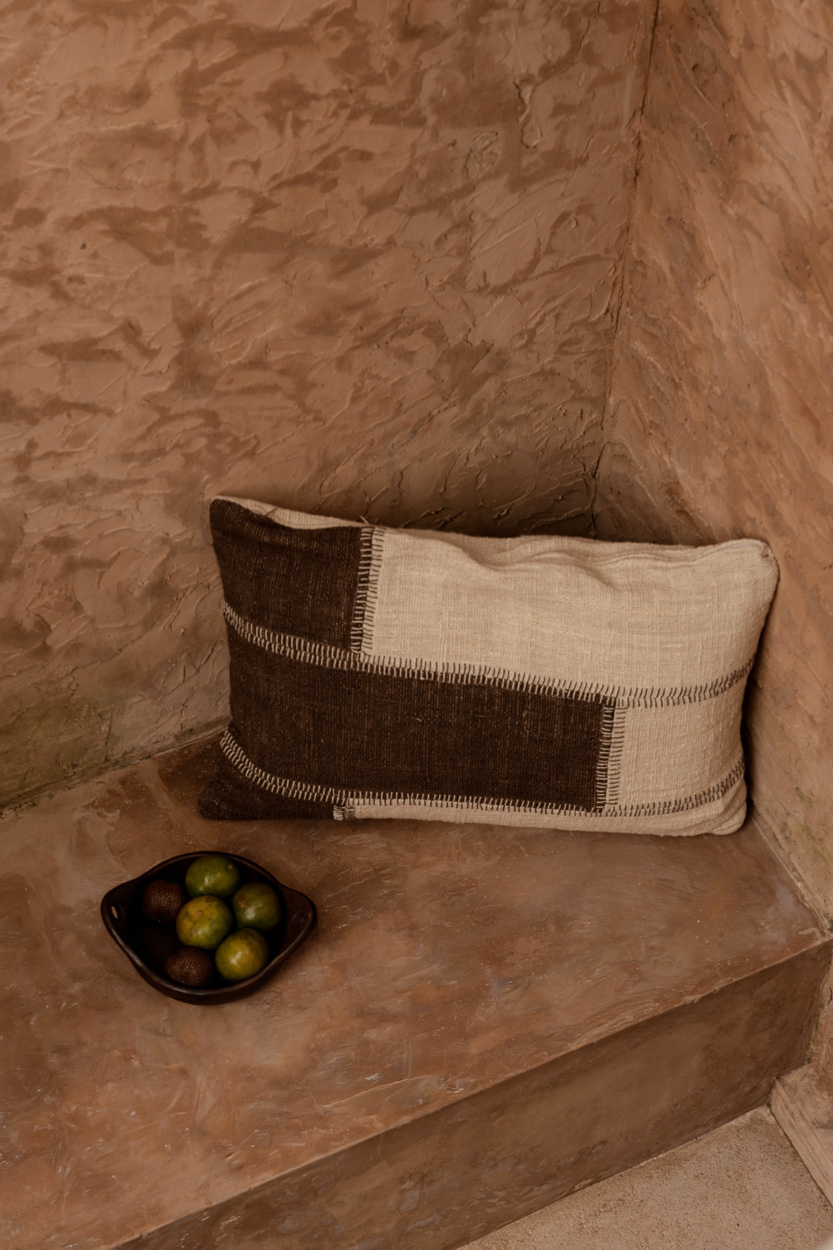 De Cocoa Patchwork Kussensloop viert tijdloos design met een krachtig contrast van natuurlijke crème- en warme bruintinten. Meer dan een decoratief detail, deze patchwork kussensloop verankert interieurs met een tactiele esthetiek die zowel rustieke als moderne kamers versterkt.