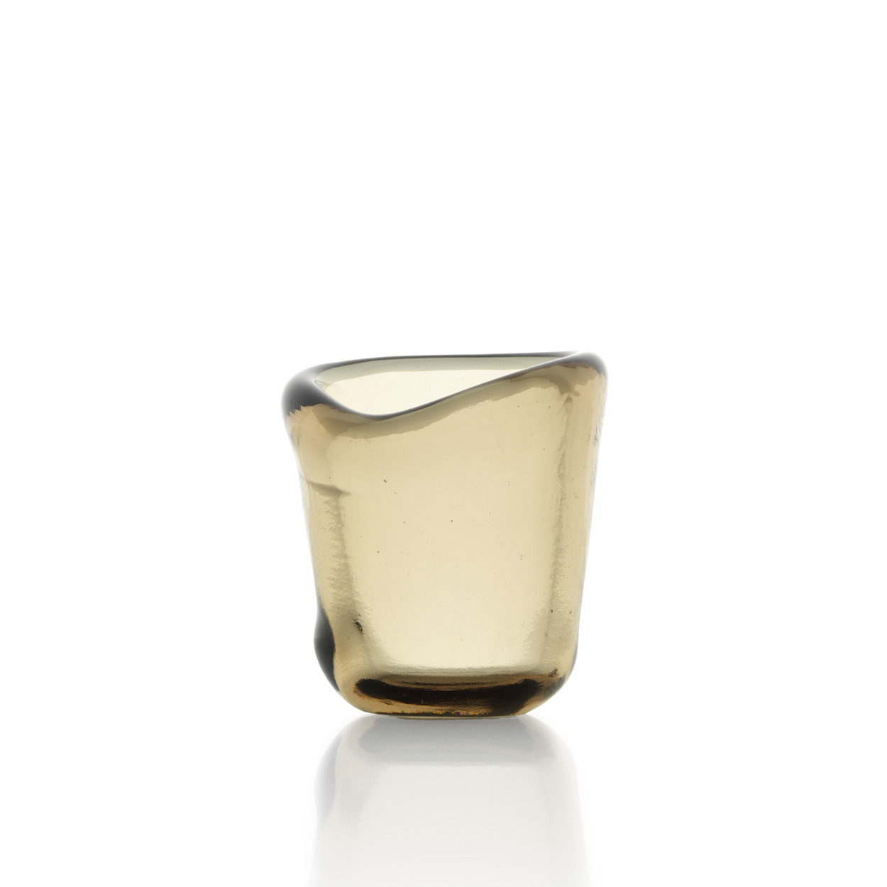 • Kleine glazen votiefhouder, handgemaakt van gesmolten lavaglas in rokerige houtskooltinten. Compact, sculpturaal en tijdloos elegant.